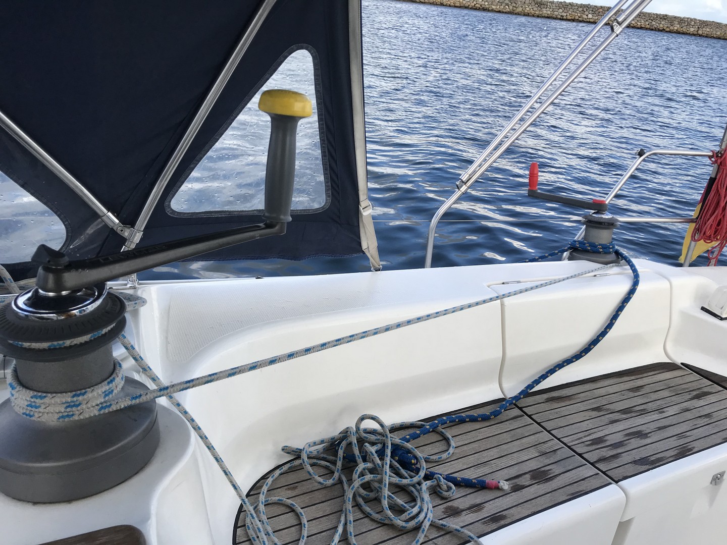 Unsere Nachbarn in der Nebenbox kamen aus Deutschland und hatten uns mit allen Informationen zum Hafen empfangen. Der andere Nachbar war nicht gerade begeistert, dass wir in einer doch sehr kleinen Box neben ihm festmachen wollten und sagte, die Box wäre nicht frei (Calypso ist 13 m lang und gut 4,3 m breit). Aber alles verlief ohne Vorkommnisse das Schiff passte da rein (eben so) und er war beruhigt.