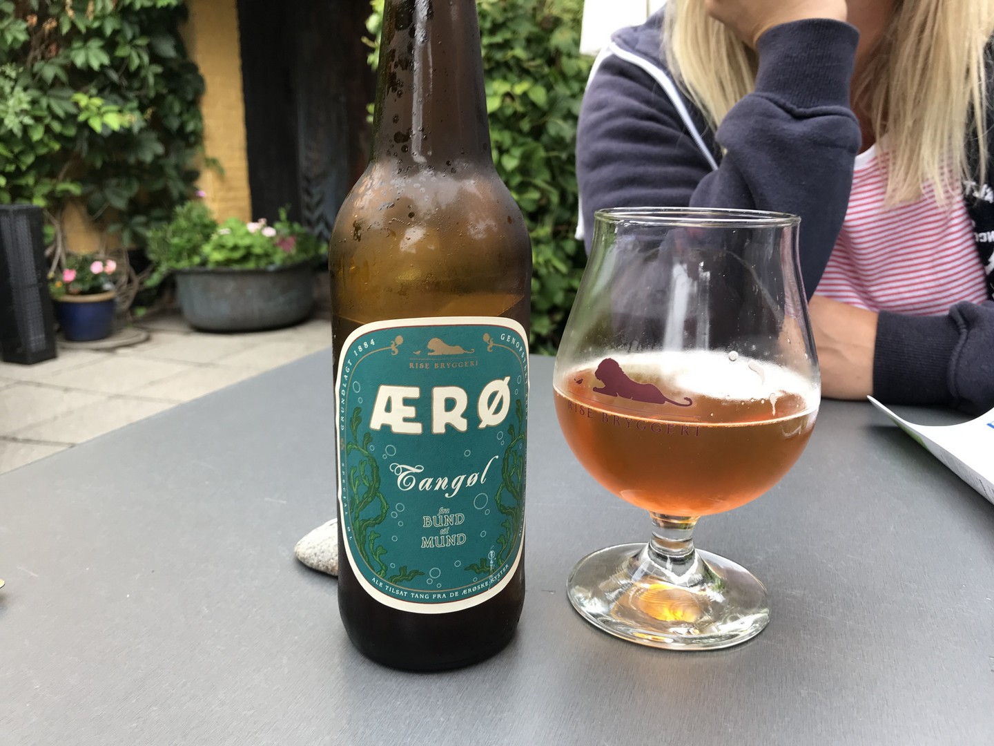 Kurz danach haben wir einen sehr lauschigen Biergarten (Restaurant Mumm) gefunden mit sehr leckeren Fischgerichten. Das Lachstartar ist sehr zu empfehlen. Das Algenbier Geschmacksache.