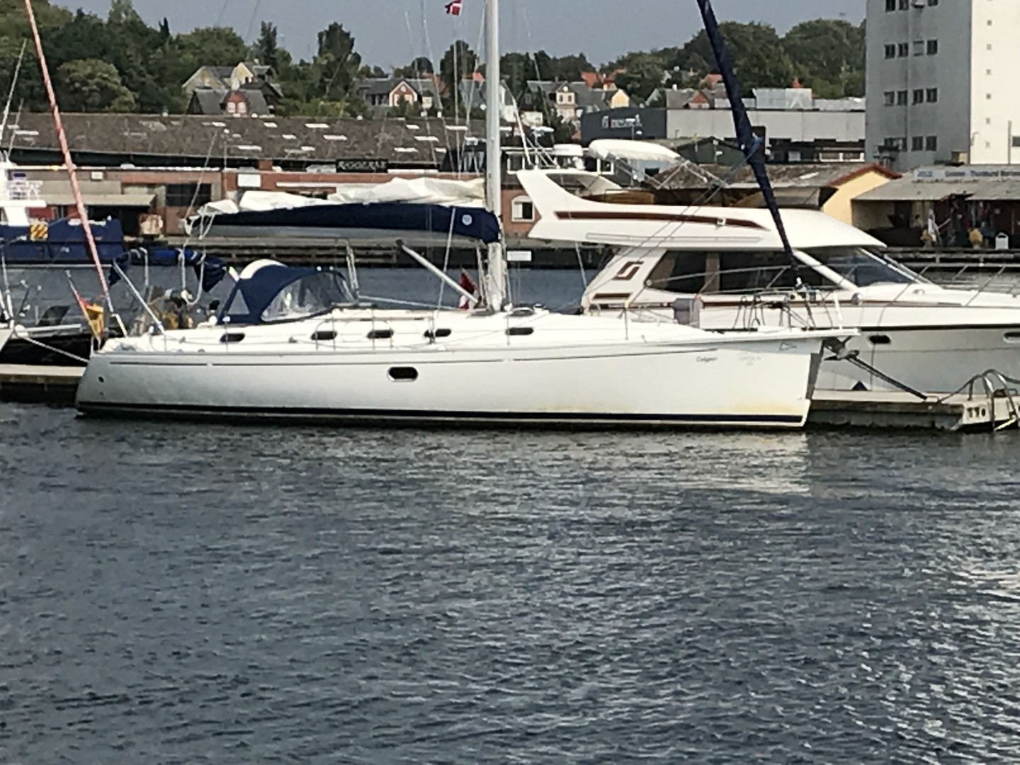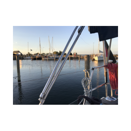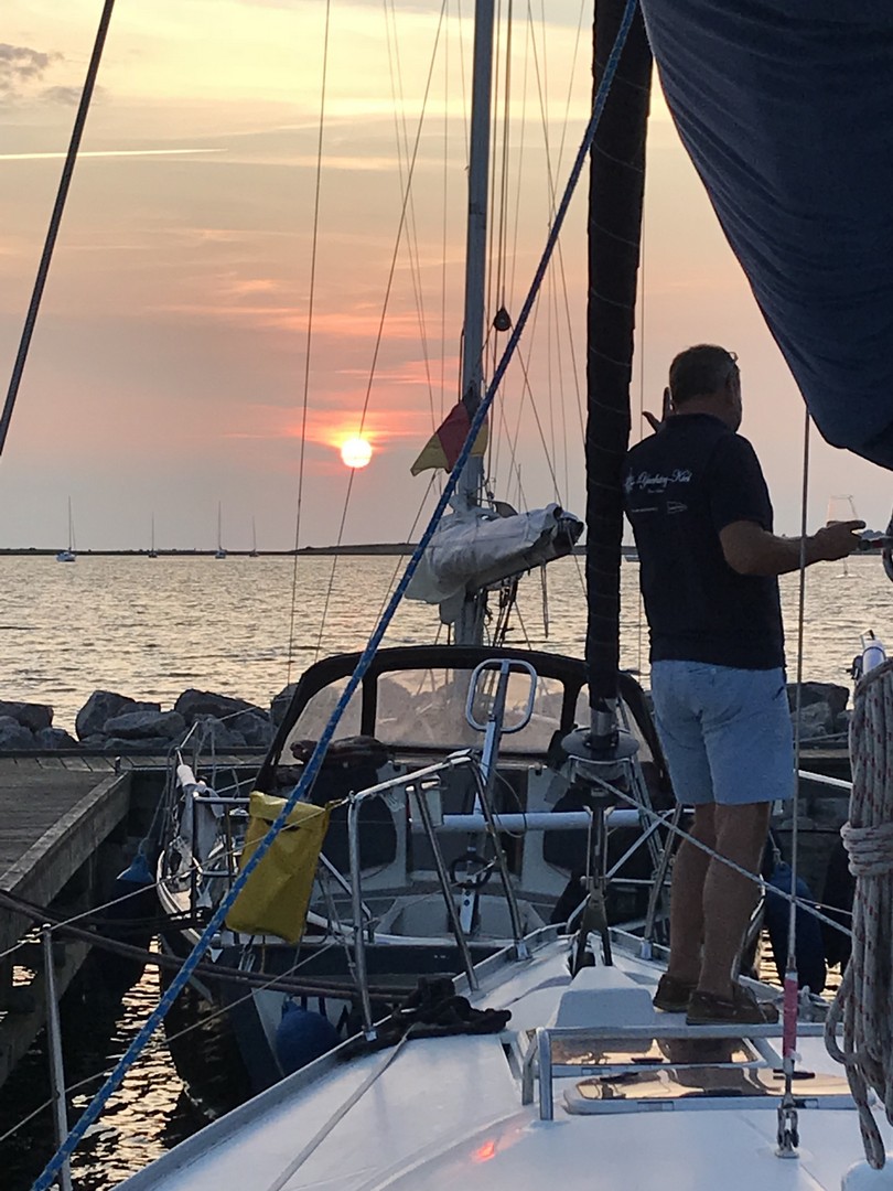 Ich konzentrierte mich darauf, das Schiff nicht zu sehr rollen zu lassen und holte die Genua ein und fuhr ins Fahrwasser. Vorsichtshalber hatte ich den Reserveanker bereitgelegt. Zum Glück liefen wir gut und wohlbehalten (bis auf eine kleine Fingerquetschung beim Festmachen) in Marstal ein und hatten den Rest des Tages noch genießen können. Wie wir dann von einem Bekannten erfuhren, der in Ӕrøsköbing lag, hatten wir in der Spitze 10 Bft., die auf uns um die Ohren pusteten.