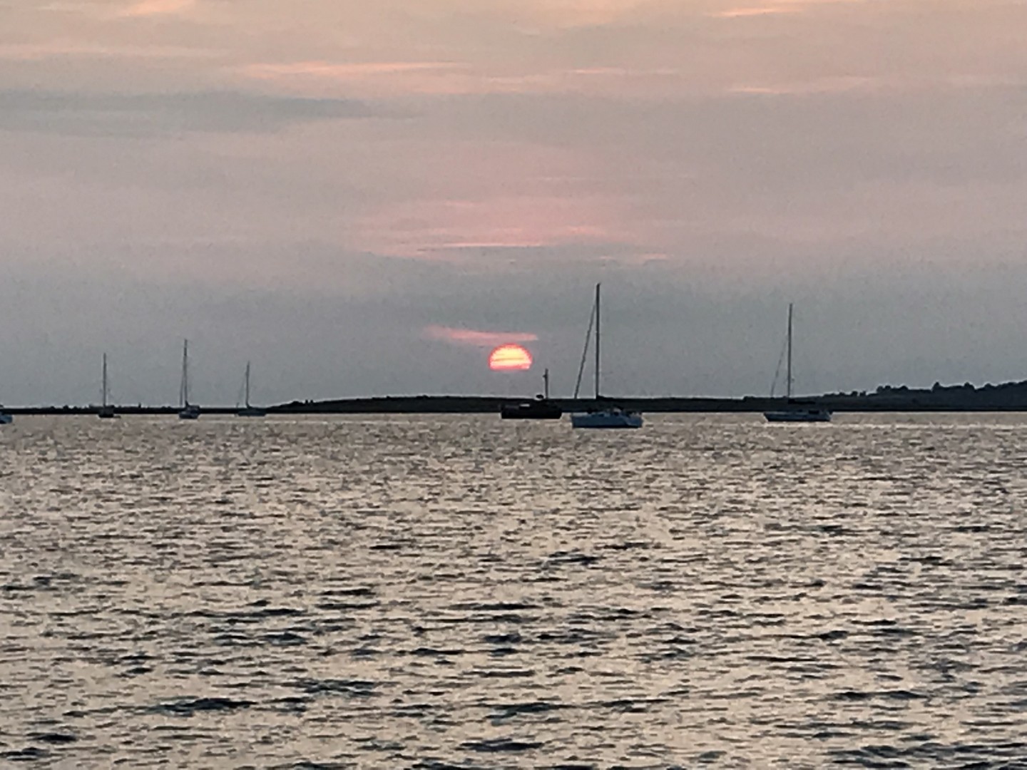 Wir haben in dem kleinen, südöstlich der Insel liegenden Hafen festgemacht. Auch dieser Hafen ist sehr idyllisch. Da die Insel über keine Lokalitäten verfügt und man dort auch sonst so gut wie nichts vorfindet, abgesehen von einem kioskähnlichem Kaufmann, haben wir am Hafen den Grill angeschmissen. Auch an diesem Tag gab es wieder perfektes Segel- und Urlaubswetter und einen traumhaften Sonnenuntergang zu gegrilltem Steak und Salat .