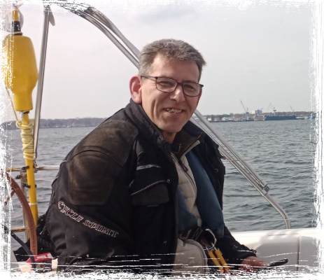 Aufgewachsen in Mittelholstein und gestartet und hat am Einfelder See vor rund 40 Jahren den Wassersport für sich entdeckt (surfen). In den 90ern in den Segelsport gewechselt. Er kommt ursprünglich aus dem technischem Projetvertrieb bei Konzernen. Es folgten einige Jahre des "Mitsegelns" auf fremden Schiffen, bevor dann 2008 das erste eigene Schiff erworben wurde, welches auch gleich in Charter ging. Zuständig für Marketing (Organisation von Flottillen, Großkundenbetreuung, Firmen und Gruppenevents auf Yachten und Booten), Produktentwicklung (Übernachtung auf Segelyachten 2008, "Kieler Sprotten Charter" 2010) Finanzen, Social Media, Personal (z.B. Auswahl und Ausbildung/Training neuer Skipper), Technik: Zuständig für die Ausrüstung und Abnahme von Kundenschiffen für das Bootszeugnis und die Abnahme durch die BG-Verkehr sowie technischer Support im Außeneinsatz.