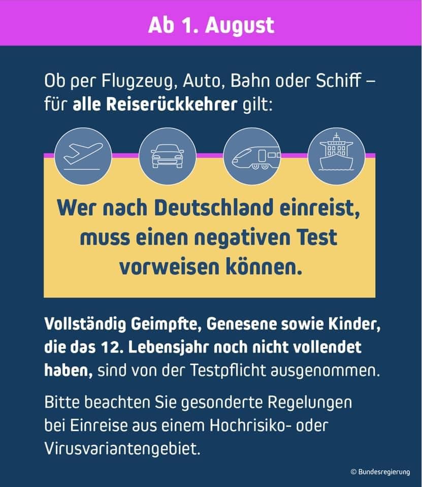 Für die Einreise nach Deutschland am Urlaubsende muss man sich nun vorab auf www.einreiseanmeldung.de anmelden und nachweisen, dass Sie genesen, geimpft oder negativ getestet wurden.
