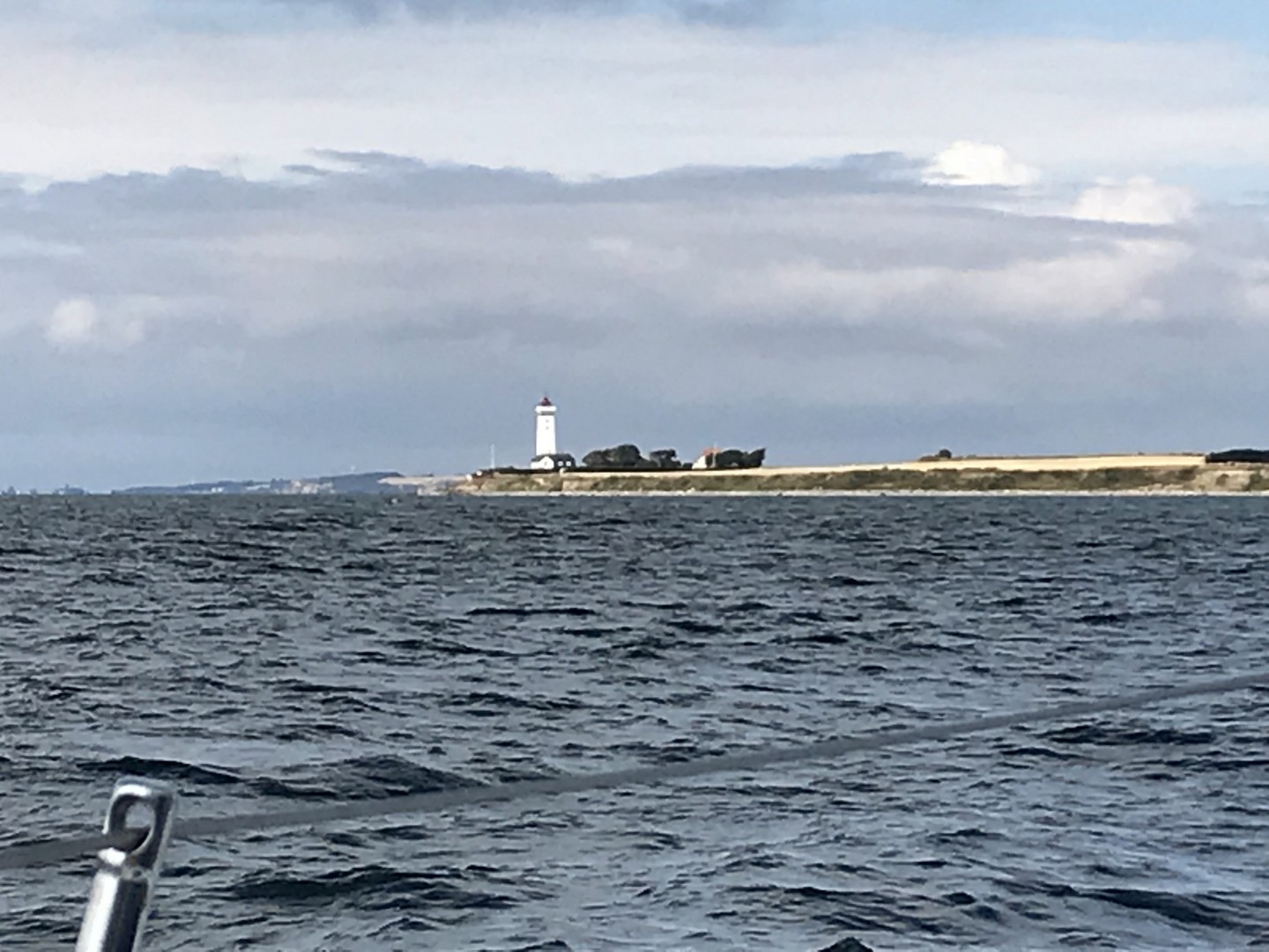 Wenige Stunden später, vor der Einfahrt nach Marstal, es war so circa 16:00 Uhr, kamen dann weitere stürmische Böen auf uns zu. Mittlerweile hatte ich die Genua nur noch 2 m ausgerollt und wir machten trotzdem sieben Knoten Fahrt über Grund. Ursprünglich waren wir an dem Abend in Marstal mit mehreren Segelcrews verabredet, doch wenige haben sich wirklich auf den Weg nach Marstal gemacht. Ein Bekannter, der dieses Treffen organisiert hatte, meinte, wir sollten doch nach Bagenkop abdrehen. Dies war allerdings völlig unpassend in Anbetracht der Wetterverhältnisse. Ich sah, dass sich ein extremer Schwell aufgebaut hatte, der dort aus West brutal in den Hafen rollte.